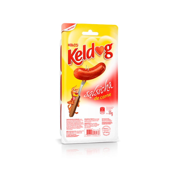Keldog Salsicha de Carne é um snack em formato divertido e delicioso, com um sabor único de carne, fazendo seu cãozinho pedir mais.
