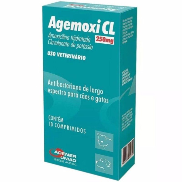 Antibiótico Agemoxi CL 250 mg Para Cães e Gatos com 10 Comprimidos