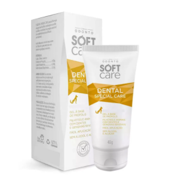 Soft Care Dental Special Care possui fórmula em gel, que facilita a aplicação e auxilia no alívio e conforto da gengiva sensível, ou sensibilizada após profilaxia periodontal.