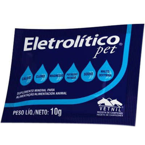 Suplemento Vetnil Eletrolitico Pet é uma composição reidratante equilibrada para reposição oral rápida de eletrólitos perdidos. Indicado para raças pequenas, sendo gatos, cachorros, aves, répteis e roedores. Auxilia rapidamente na restauração do meio promovendo a recuperação após o exercício, constituindo-se um reforço energético essencial e de fácil assimilação. Possui glicose polimerizada (maltodextrina), que não é irritante para o trato gastrintestinal e fornece energia por mais tempo.