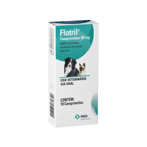 Antibiótico Flotril 50 mg Para Cães e Gatos 10 Comprimidos