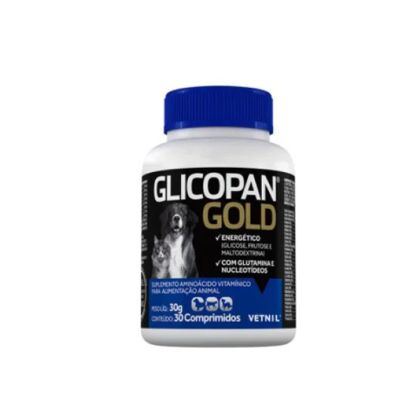 O Suplemento Vetnil Glicopan Gold para auxilia à recuperação física e melhora do estado geral. Estimula o apetite, mantém a vitalidade e disposição. Energético e especialmente rico em nutrientes como nucleotídeos e glutamina, está indicado para a melhora da condição nutricional e também no preparo para exposições e competições.