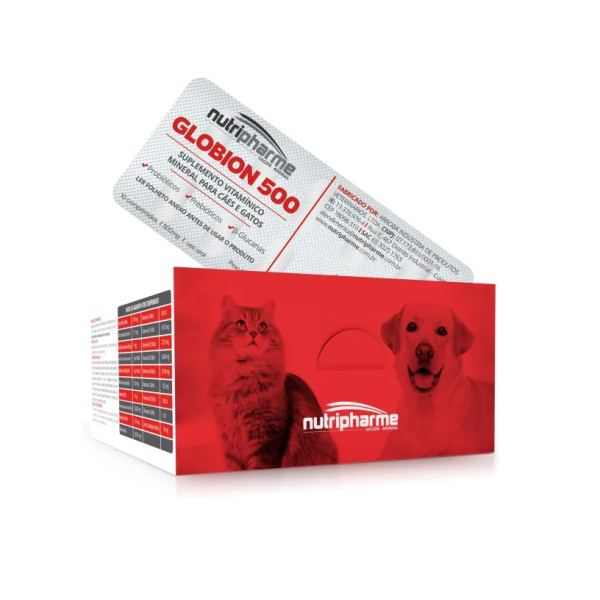 Suplemento Vitamínico Globion 500 mg Para Cães e Gatos com 10 Comprimidos