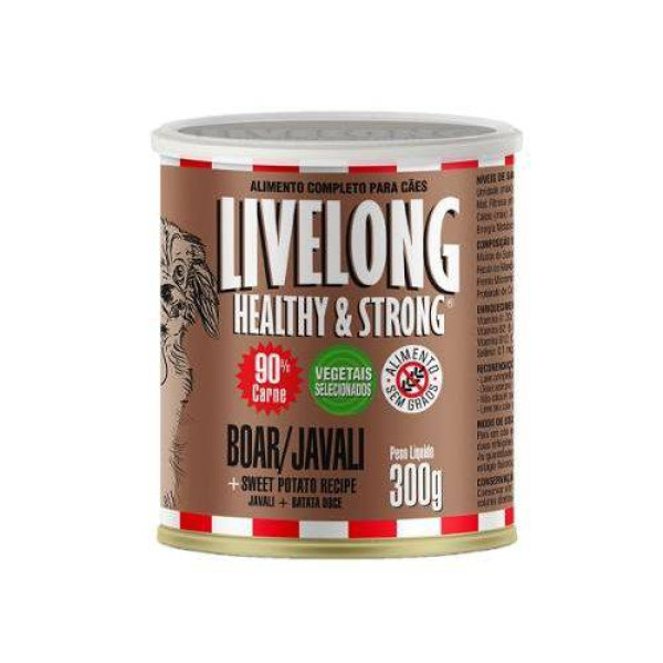 Ração Úmida Lata Livelong Para Cães Sabor Javali 300 G