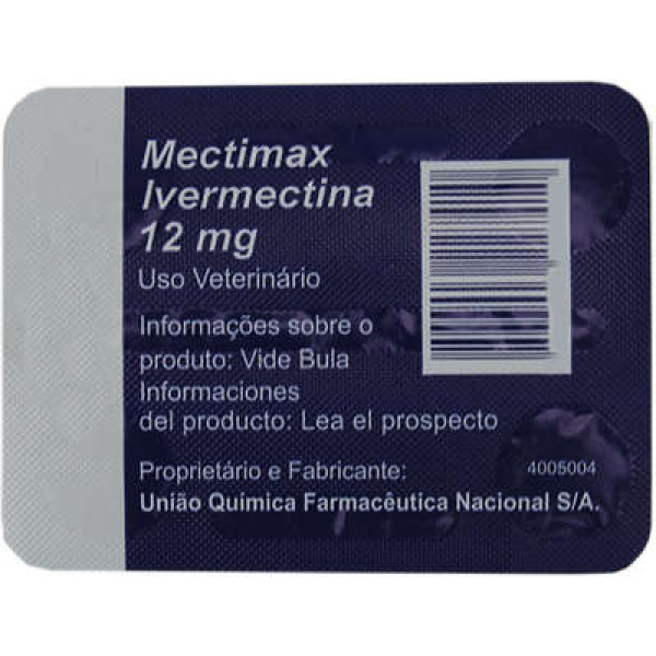 Vermífugo Mectimax 12 mg Com Invermectina Para Cães Com 4 Comprimidos
