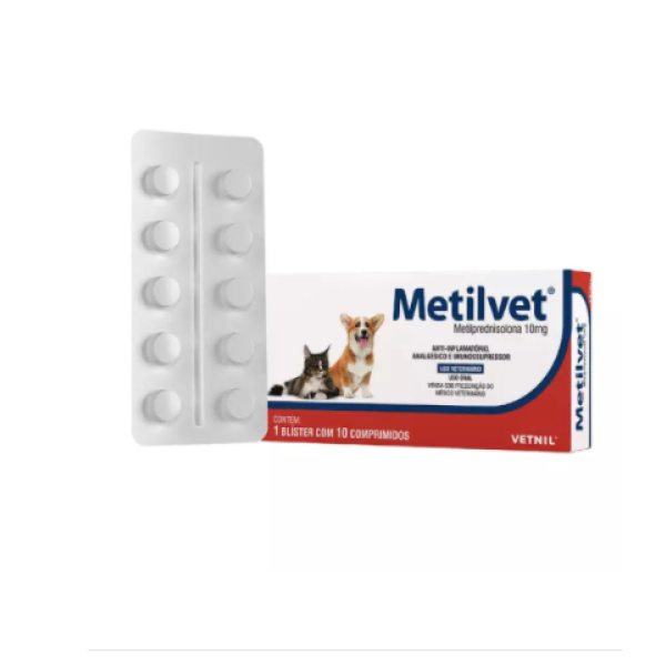 Anti-inflamatório Metilvet 10 mg Para Cães e Gatos Com 10 Comprimidos