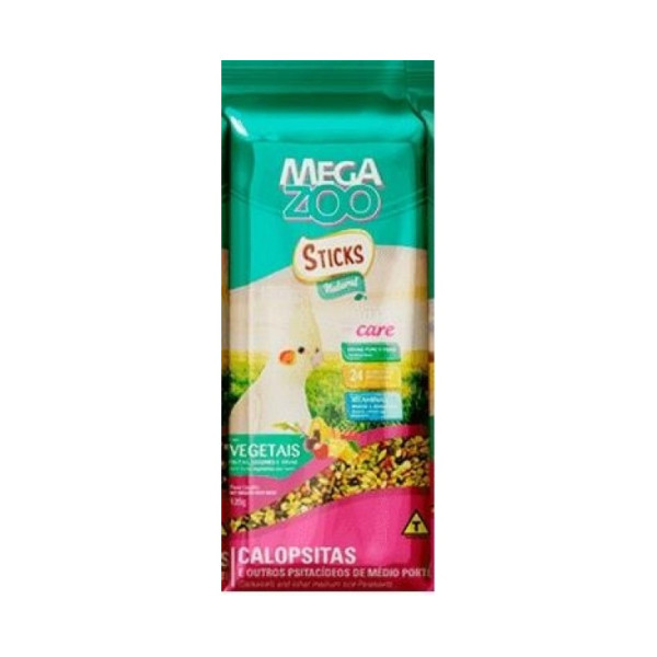 Megazoo Sticks Para Calopsitas e Outros Psitacídeos Sabor Vegetal 120 G