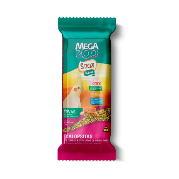 Megazoo Sticks Para Calopsitas e Outros Psitacídeos Sabor de Ervas, Mel e Ovos 120 G