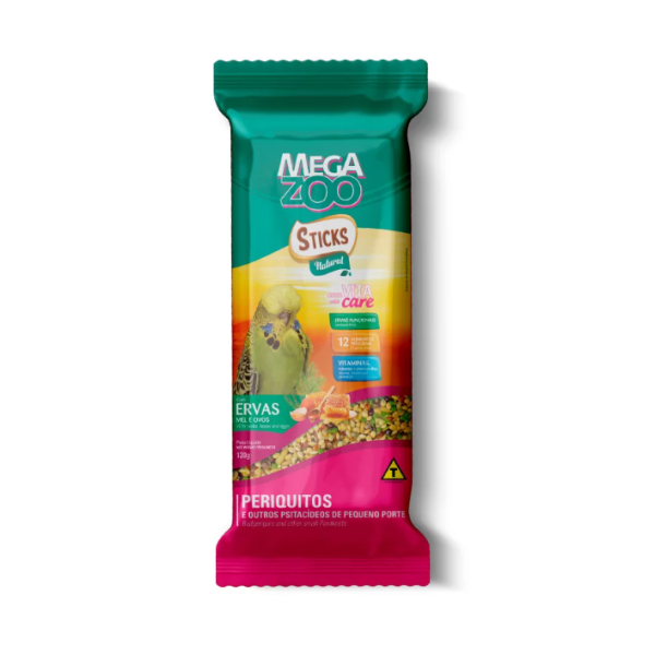 Megazoo Sticks Para Periquitos e Outros Psitacídeos Sabor Ervas, Mel e Ovos 120 G