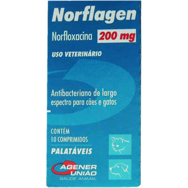 Antibiótico Norflagen 200 mg Para Cães e Gatos Com 10 Comprimidos