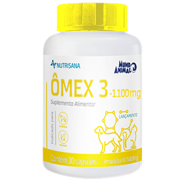 Nutrisana Ômex3 1100 mg é o suplemento de ácidos graxos essenciais altamente purificados, essencialmente desenvolvido pelo Laboratório Mundo Animal para a vitalidade de cães e gatos. É indicado para cães e gatos que necessitem reposição de ácidos graxos essenciais ômega 3 em qualquer fase da vida.