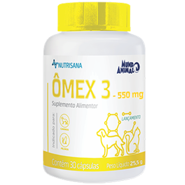 NutriSana Ômex3 550 mg é um suplemento de uso oral para cães e gatos. Contém ácidos graxos essenciais, podendo ser administrado para animais com carência desses nutrientes em qualquer fase da vida. USO PROIBIDO NA ALIMENTAÇÃO DE RUMINANTES.