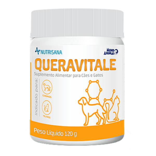 Suplemento vitamínico e mineral para a pele e a pelagem, indicado para cães e gatos. O suplemento Nutrisana Queravitale apresenta uma formulação balanceada que dá suporte nutricional a animais com queda de pelo devido a falta de nutrientes. USO PROIBIDO NA ALIMENTAÇÃO DE RUMINANTES.