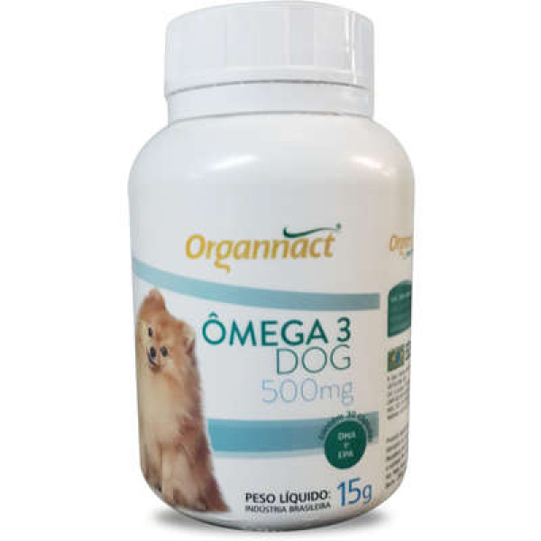 OSuplemento Vitamínico Organnact Omega 3 Dog 500 é indicado para cães em qualquer idade ou fase da vida. É um suplemento alimentar, que contém Ômega 3, extraído do óleo de peixe de águas frias, ricos em DHA e EPA e vitamina E. Sua apresentação em cápsulas gelatinosas facilita a administração, pois não possui odor e sabor forte de peixe. Suplemento vitamínico indicado para cães em qualquer idade ou fase da vida. O Ômega 3 é um ácido graxo essencial, que não pode ser sintetizado pelo organismo dos cães, dessa forma devem ser ingeridos através da dieta ou suplementação.
