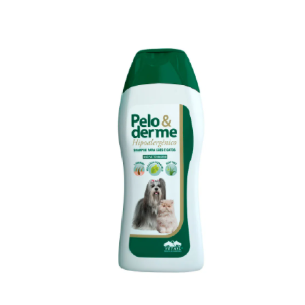 Shampoo Pelo & Derme Hipoalergênico,produto hipoalergênico indicado para a higiene, refrescância e suavidade da pele de cães e gatos.