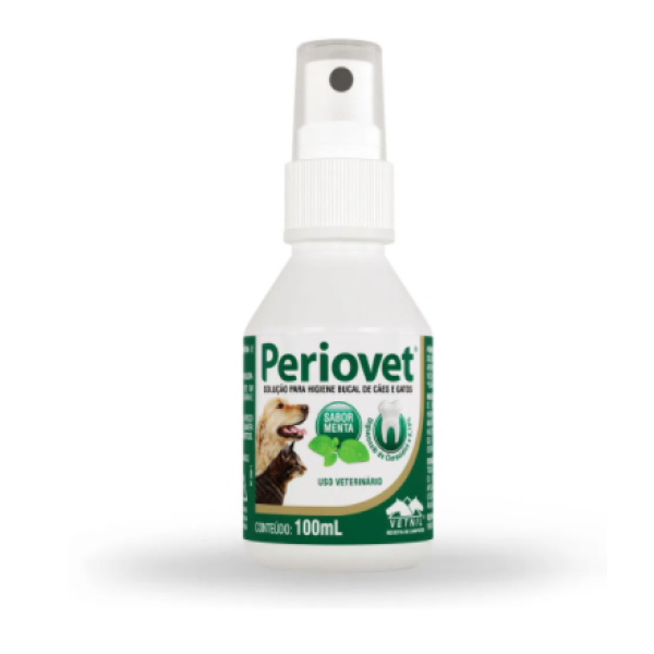 Periovet Spray foi desenvolvido para auxiliar na manutenção da saúde bucal, é uma solução à base de digluconato de clorexidina a 0,12% e conta com um delicioso sabor de menta, garantindo um hálito mais refrescante para o seu pet.
