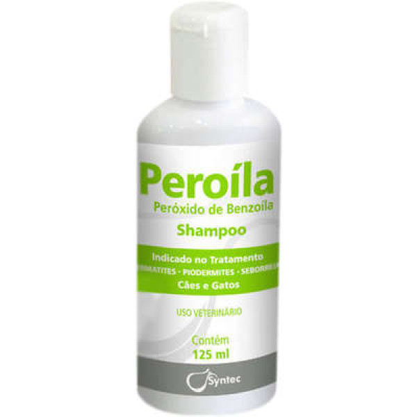 Shampoo Dermatológico Syntec Peroíla para Cães e Gatos para a higiene e para o tratamento curativo ou profilático da seborreia, dermatites e das piodermites das dobras e interdigitais em cães e gatos.