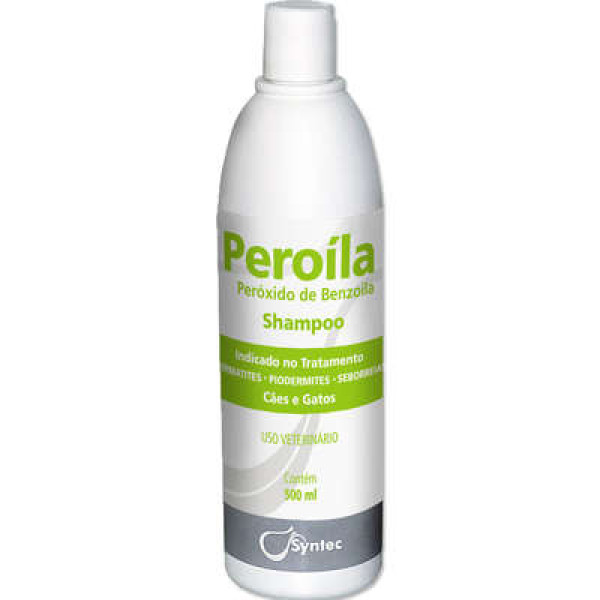 Shampoo Dermatológico Syntec Peroíla para Cães e Gatos para a higiene e para o tratamento curativo ou profilático da seborreia, dermatites e das piodermites das dobras e interdigitais em cães e gatos.