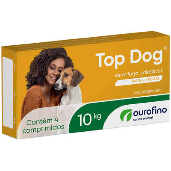 Vermífugo Top Dog 1 Comprimido Para 10 KG Para Cães Com 4 Comprimidos