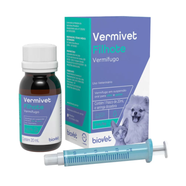 Vermífugo Vermivet Filhotes Para Cães e Gatos 20 ml