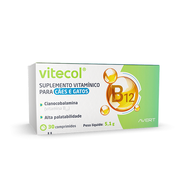 VITECOL® é um suplemento vitamínico indicado para cães e gatos que necessitem de aporte nutricional de cianocobalamina (vitamina B12).