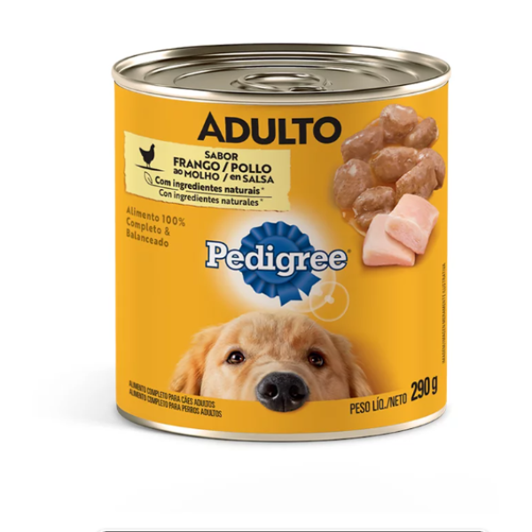 A Ração Úmida Lata para cachorros adultos frango ao molho é um alimento desenvolvido para cachorros com alta palatabilidade e sem conservantes artificiais.