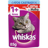 Ração Úmidas Sachê Whiskas Para Gatos Adultos Castrados Sabor Carne 85 G
