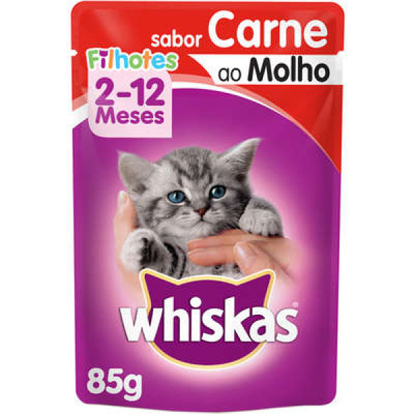 A Ração Úmida Whiskas Sachê Carne ao Molho para Gatos Filhotes contém ingrediente necessários para auxiliar no crescimento saudável dos filhotes, distribuindo os nutrientes para cada parte do corpo.