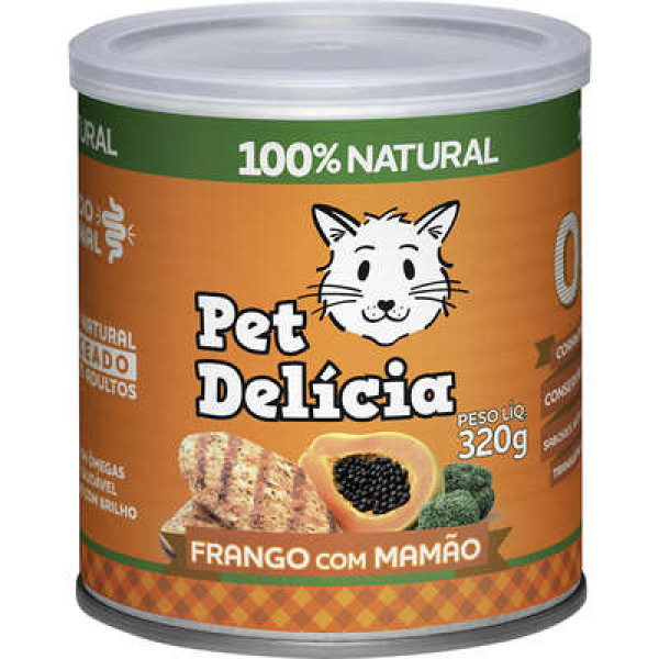 Ração Úmida Lata Pet Delícia Frango Com Mamão Para Gatos 320 G