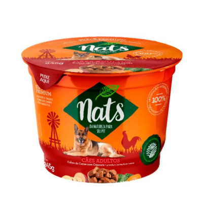 Composição: Peito de frango, moela de frango, abobrinha, cenoura, batata, ervilhas, chuchu, óleo de girassol, lecitina de soja não transgênica, alecrim, algas, aveia em flocos, semente de linhaça, levedura seca, semente de chia, pimenta preta (piperina), carbonato de cálcio, fosfato bicálcico, açafrão da terra (cúrcuma), goma xantana, extrato de alecrim, levedura seca de cervejaria, vitaminas (A, D3, E, K3, B1, B2, B6, B12, C, niacina, ácido pantotênico, ácido fólico, colina, biotina) e minerais (zinco, ferro, selênio, cobre, manganês, iodo).