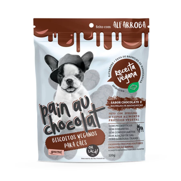 Biscoito Vegano Gourmet Pain Au Chocolat Oh Là Là Para Cães Filhotes 120 G