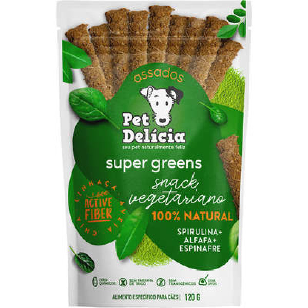 O Snack Pet Delícia Super Greens Natural Sabor Alfafa, Espirulina e Espinafre vêm com uma combinação incrível de super foods verde escuras cheias de vitamina K, ferro e selênio que ajudam o organismo a se desintoxicar e trazer mais viço e vitalidade, além de fibras também vindas da aveia, linhaça e chia. Aqui a farinha de abóbora se faz presente, agregando sabor e vitamina A, além das leveduras, que agregam vitaminas do complexo B!