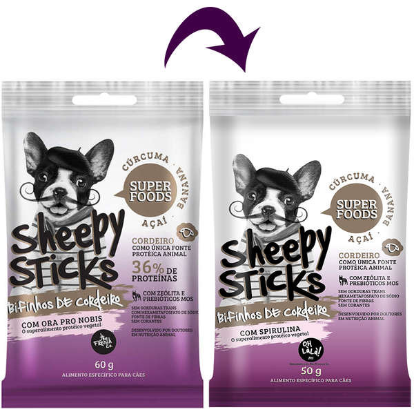 Bifinho Sheepy Sticks Oh Là Là Para Cães Sabor Açai e Banana 60 g