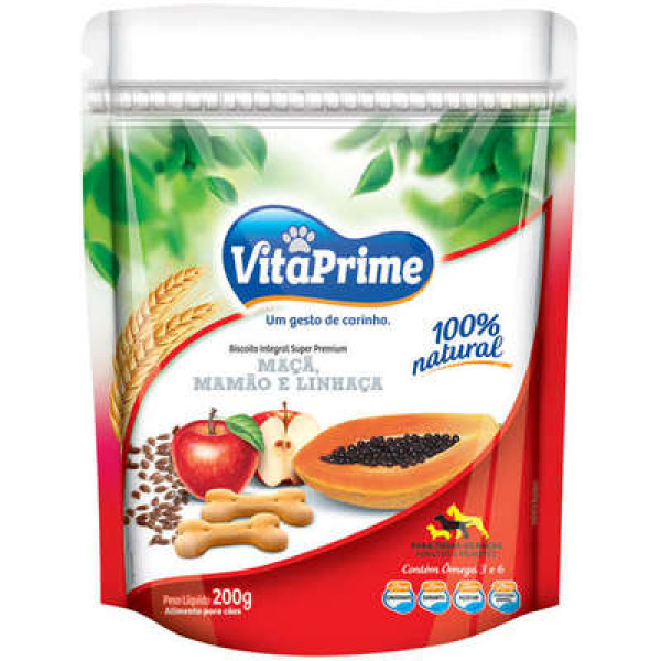 Biscoito Vitaprime Para Cães Sabor Mamão Com Maça e Linhaça com 200 G