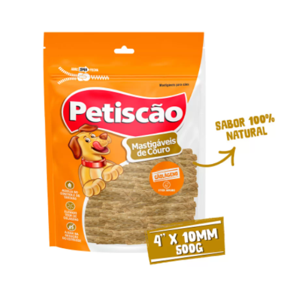 Petisco Caolageno Petiscão Stick Para Cães 4 "10 mm Com 500 G