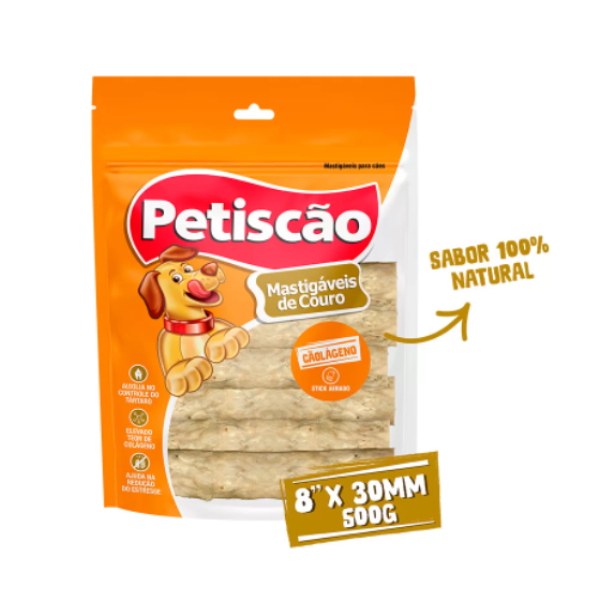 Petisco Caolageno Petiscão Stick Para Cães 8 "30 mm Com 500 G