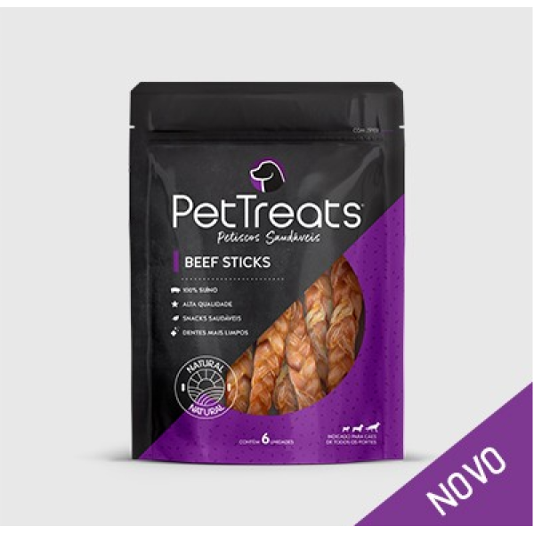 Muito saborosos e nutritivos, nosso Beef Sticks são uma ótima pedida. Por serem trançados, aumentam o desafio da mastigação e ajudam a manter a saúde bucal do seu cão.
