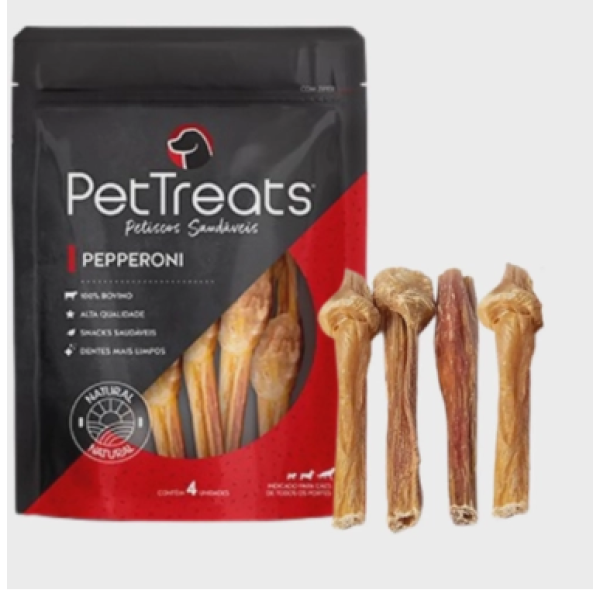 Pacote com 4 unidades do Pepperoni - são sticks de bexiga bovina desidratada.