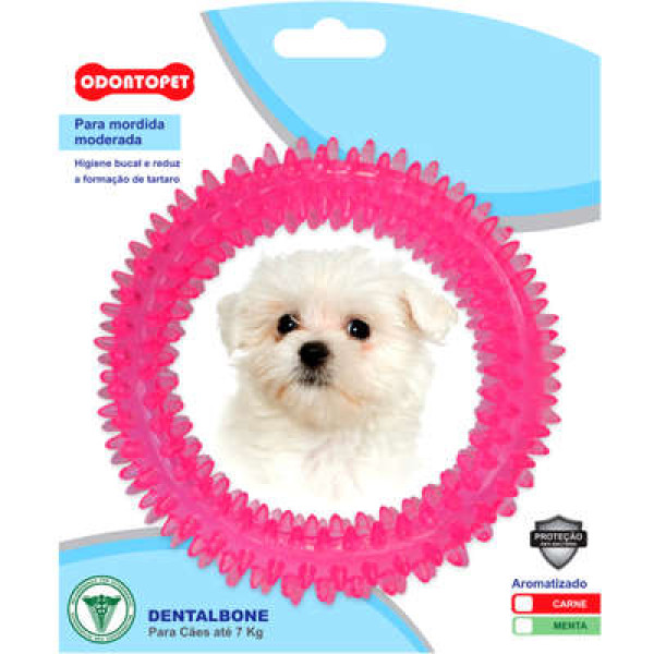 Brinquedo Mordedor Dental Argola Odontopet Rosa Para Cães Até 7 KG