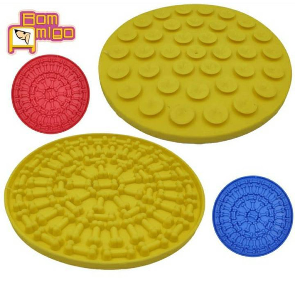Criado para que seu pet possa realizar uma alimentação de forma mais saudável. Este produto deve ser utilizado com alimentos pastosos, basta passar o alimento por toda superfície, e colocar o produto em superfícies lisas, e pronto, ele fará uma alimentação mais confortável. Pesando 103g e medindo 15x15x1 cm.