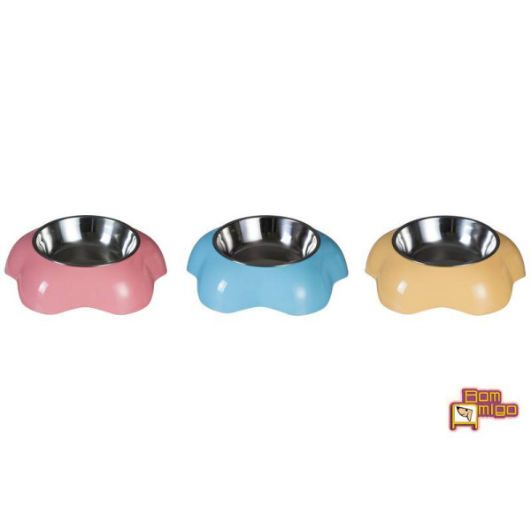 Comedouro de Inox Melamina Flower Bom Amigo Tamanho M Para Cães e Gatos