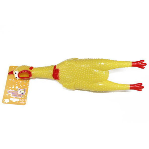 Galinha que emite som quando pressionada. Com 12x4 cm pesando 25g.