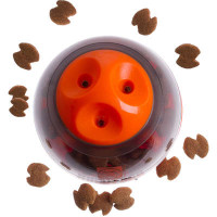Com ajuste deslizante que permite escolher o tamanho do alimento ou o grau de dificuldade, os restritores internos que protelam a saída do alimento. A tampa superior vêm com rosca e possui 03 orifícios que estimulam o olfato, e depois da brincadeira é só desmontar e limpar. Diversão saudável e entretenimento para seu amigo!