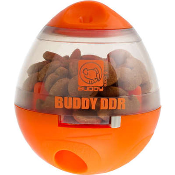 O Brinquedo Buddy Toys Buddy DDR Dispenser de Ração & Petiscos é interativo, estimula o pet fisicamente e mental na caça pelo alimento. O propósito é fazer com que o cachorro se esforce, de maneira divertida, para conseguir o alimento, que é liberado aos poucos.