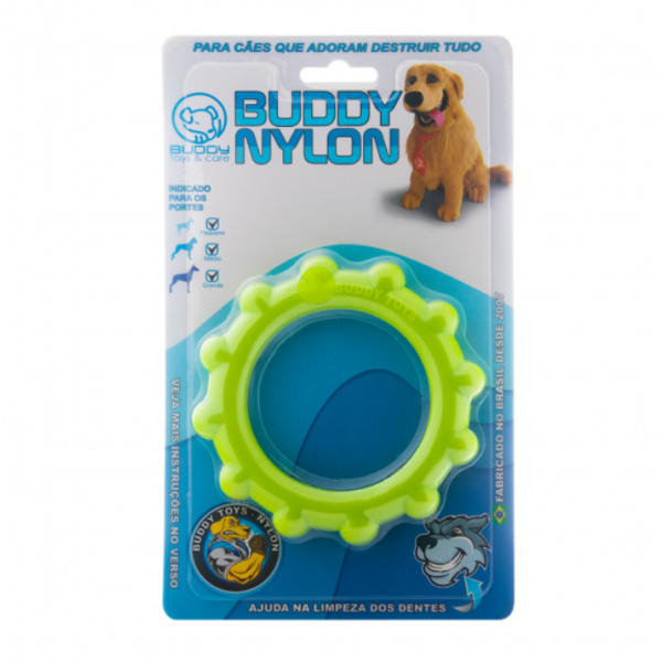 Produzido com um composto de Nylon Especial, exclusivo da Buddy Toys, o Disco Buddy Nylon é um brinquedo atóxico, que auxilia no combate ao mau hálito, e tártaro canino.