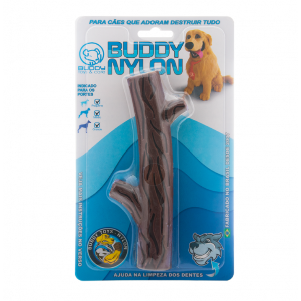 Produzido com um composto de Nylon Especial exclusivo da Buddy Toys, o Graveto Buddy Toys além de atóxico, é fácil de segurar, e ajuda a manter os dentes do cachorro limpos, combatendo o mau hálito, o tártaro canino, e auxiliando na higiene bucal do pet.