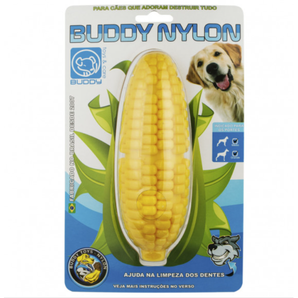 O Milho Nylon é o brinquedo da Buddy Toys para cães que destroem tudo! Assim como toda a linha Buddy Nylon, este brinquedo é produzido com um composto de Nylon Especial, exclusivo da Buddy Toys. Possui textura e um formato que os cães adoram, pois é fácil de segurar.
