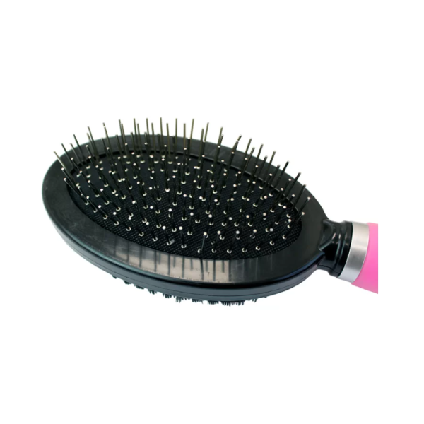Escova Dupla Para Escovar Com Cabo de Gel German Hart Rosa Tamanho G Para Cães e Gatos