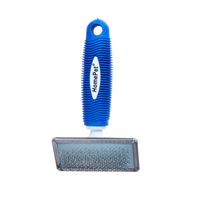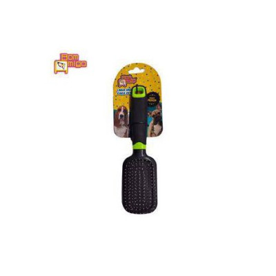 Esta escova de ação dupla tem dois lados especializados - um com pinos de aço inoxidável para remover o cabelo e emaranhados, e outro com cerdas macias de nylon para redistribuir os óleos naturais no pêlo do seu cão e restaurar o brilho e a maciez do pelo. Nada como um cãozinho limpinho e brilhante!