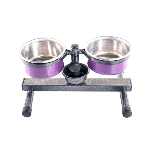 Comedouro e Bebedouro Suspenso Linha Premium com Sistema Anti-Formiga Filhote 500 ml é um produto exclusivo Nf Pet. Assim como o Comedouro Premium Nf Pet possui regulagem de altura e além disto, também conta com exclusivo sistema anti-formiga que é um recipiente junto da base do comedouro onde se coloca algum líquido que impede que as formigas cheguem até a ração de seu pet. A base é fabricada em aço pintada com pintura eletrostática craqueada e possui duas bacias em alumínio que podem ser utilizadas para servir água e ração ao mesmo tempo. De fácil higienização. Material: Aço Carbono e Alumínio; Base com pintura eletrostática preta craqueada Bacias que podem ser: vermelhas, azuis, lilás ou em alumínio natural.